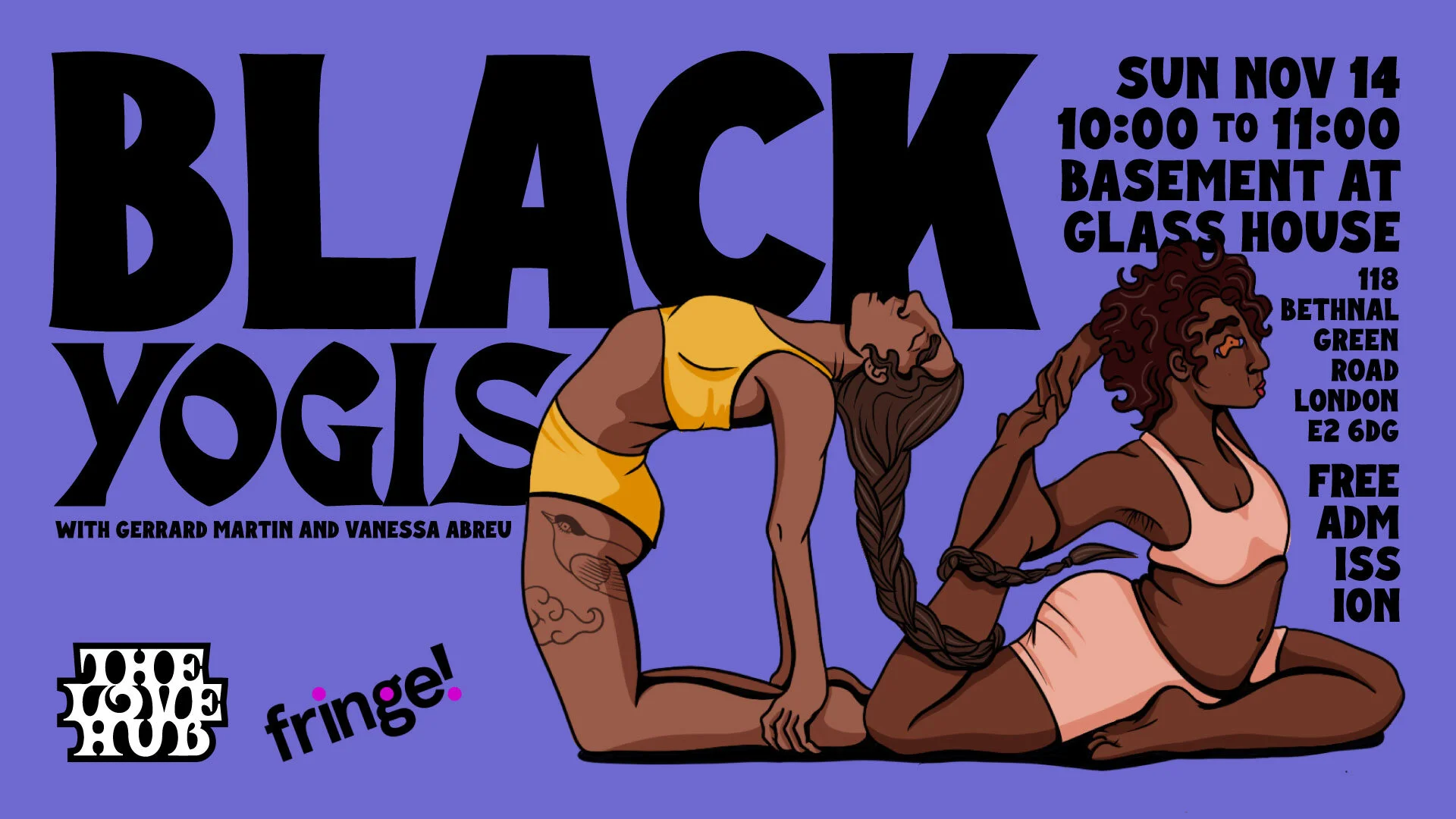 WORKSHOP, BASEMENT @ GLASS HOUSE, FREEKeeping to our tradition of kicking off our weekend in a calm and serene way, we welcome back Black Yogis. This is a safe space for QTIPOC and friends to come together to connect through the practice of yoga. This year we’re mixing it up and the class will be led by two amazing teachers, Gerrard Martin and Vanessa Abreu, both experienced yogis. The class will be an open-level introduction, so if this is your first or 50th time practising, Gerrard and Vanessa will ensure you get the best out of the class.